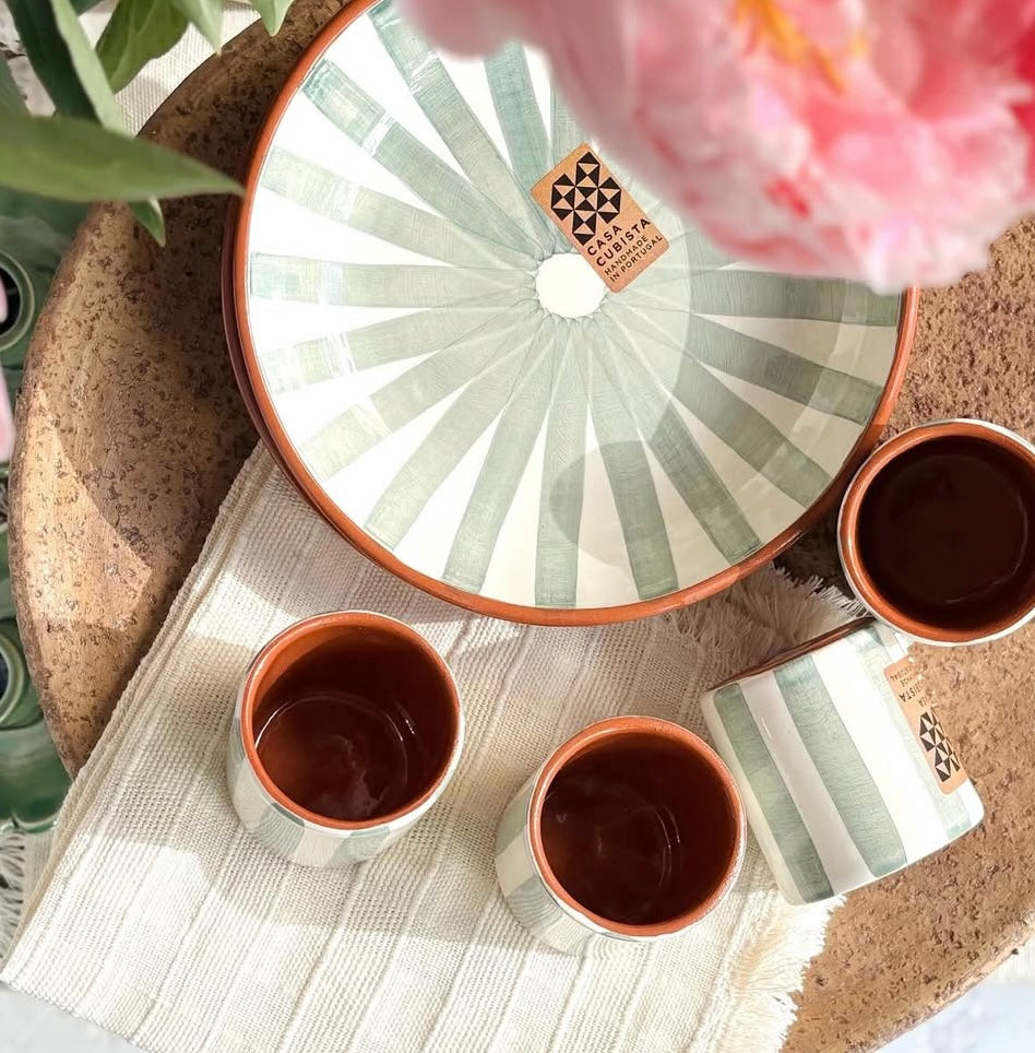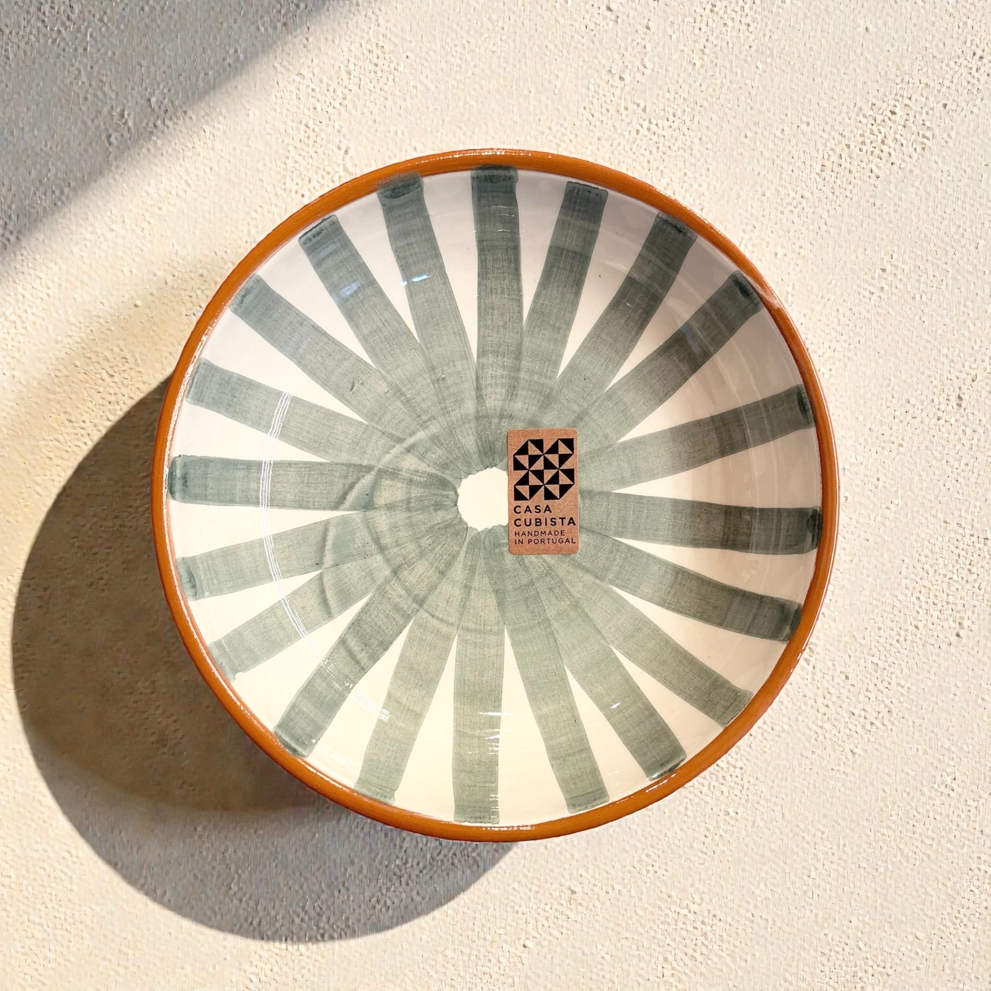 Bol en terre cuite artisanale rayures sauge – Casa Cubista | Fait main au Portugal