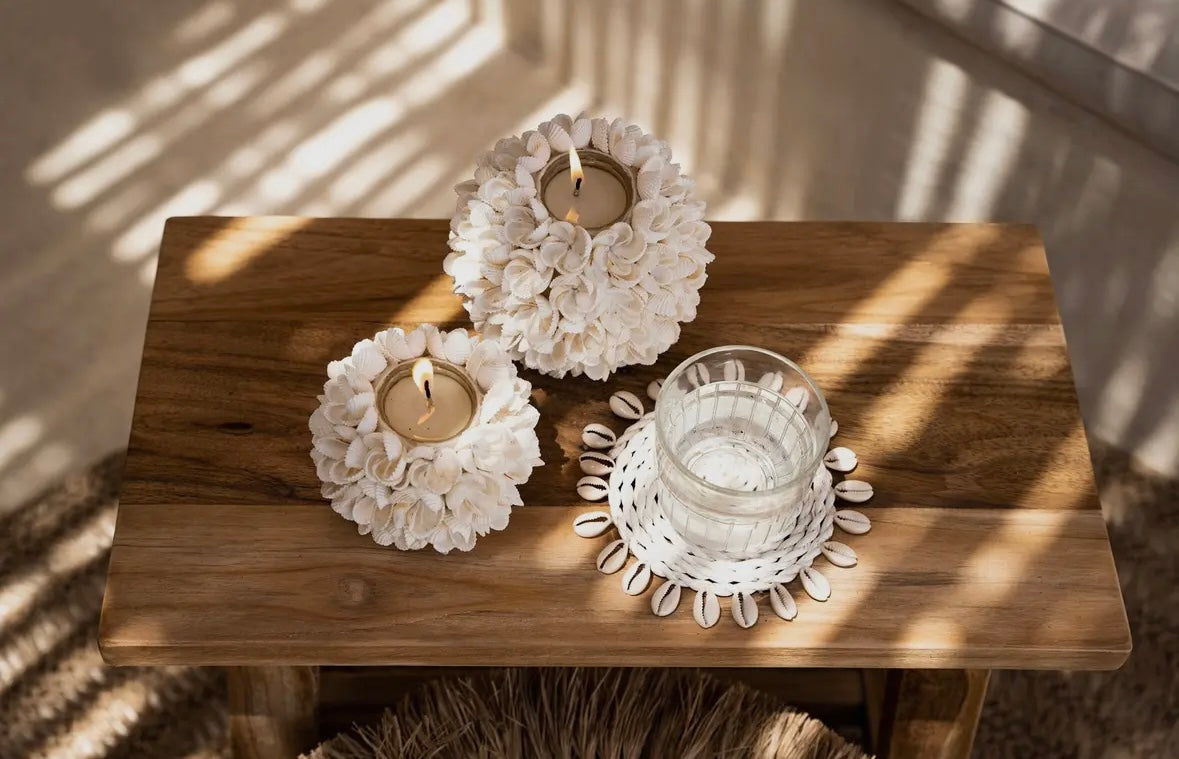 Découvrez l’élégance intemporelle de notre bougeoir Flower Power, une pièce unique façonnée entièrement à la main. Ses délicats pétales en coquillage blanc sont minutieusement assemblés pour former une sphère harmonieuse, créant un jeu de lumière doux et poétique dès qu’une bougie est allumée.