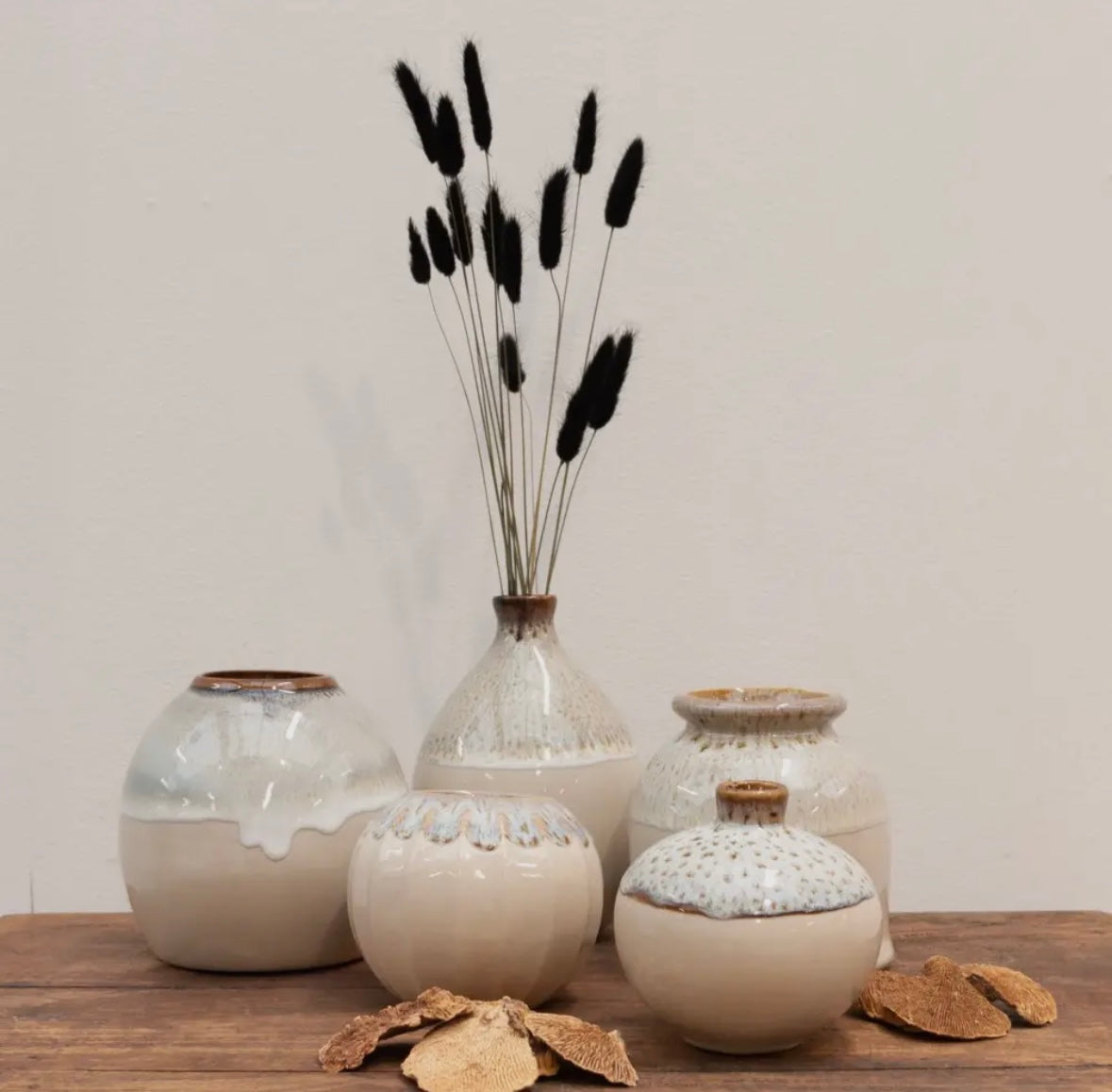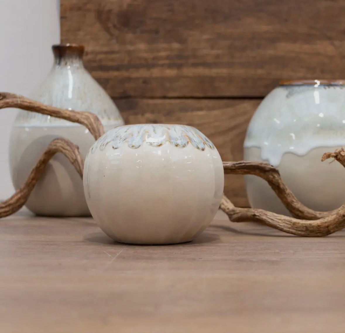 Vase Rond Loli – Céramique Glacée, Fait Main en Inde